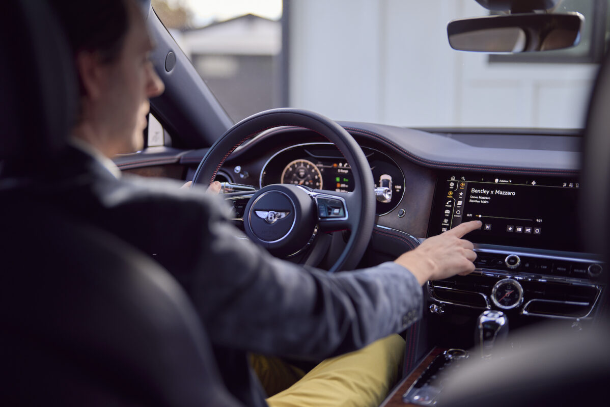 Model Flying Spur brytyjskiej marki okazał się idealną salą koncertową do pracy Mazzaro. Wzmacniacz o mocy 2200 W napędzający łącznie 19 głośników w kabinie i dwa kinestetyczne shakery na przednich siedzeniach sprawiają, że system ma zarówno moc, jak i zakres częstotliwości, dzięki którym każda muzyka brzmi wyjątkowo.