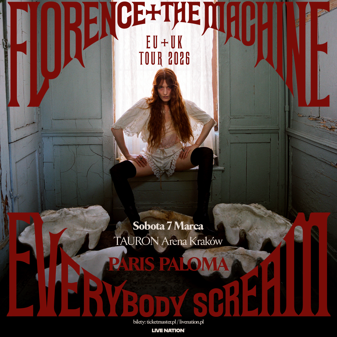 Dziś Florence Welch – znana jako Florence + The Machine – ogłasza trasę koncertową w Wielkiej Brytanii i Europie, aby uczcić wydanie swojego szóstego albumu studyjnego „Everybody Scream”, którego premiera zaplanowana jest na 31 października. Artystka zabierze fanów w magiczną podróż, odwiedzając największe areny – dwukrotnie londyńską O2 Arena, Accor Arena w Paryżu oraz w TAURON Arenę w Krakowie. Florence towarzyszyć będzie Paris Paloma, która otworzy wszystkie osiemnaście koncertów trasy Everybody Scream.
