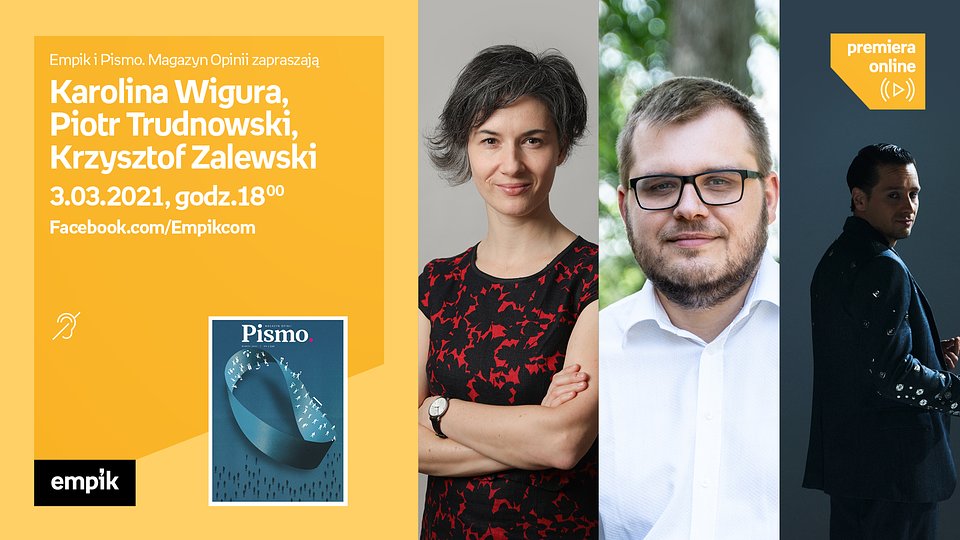 Już 3 marca o godzinie 18:00 odbędzie się spotkanie towarzyszące premierze marcowego wydania „Pisma. Magazynu Opinii”. Gośćmi będą Karolina Wigura, Piotr Trudnowski i Krzysztof Zalewski. Tematem rozmowy będą konsekwencje rosnącej frustracji wywołanej pandemią, w dobie mediów społecznościowych i politycznych podziałów, oraz próby szukania głębszego porozumienia między wściekłymi na siebie wzajemnie grupami. Spotkanie poprowadzi Justyna Dżbik-Kluge.