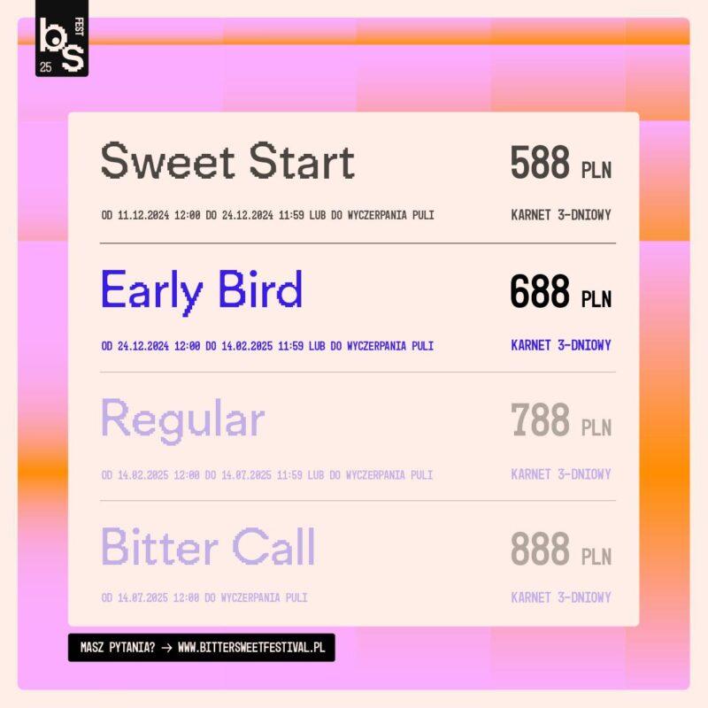 Pierwsza edycja BitterSweet Festival potrwa 3 dni w terminie 14-16 sierpnia 2025 roku w poznańskim Parku Cytadela. Międzynarodowy line-up będzie się składał z ponad 40 artystów, którzy wystąpią aż na 3 scenach. Organizatorzy obiecują, że będzie to wyjątkowe zetknięcie nostalgii z nowoczesnością i muszę przyznać, że dotychczasowe ogłoszenia idealnie to odzwierciedlają.