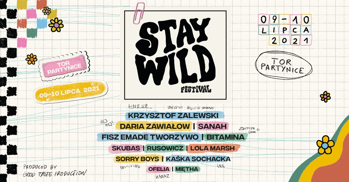 Na terenie wyjątkowego (bo jednego z trzech takich obiektów w Polsce) partynickiego hipodromu, w dniach 9 – 10 lipca 2021 odbędzie się pierwszy Stay Wild Festival. Do line-upu zaproszono polskich i zagranicznych artystów, którzy reagują twórczo na to, co wokół. W line-upie m.in. Krzysztof Zalewski, sanah, Ania Rusowicz, Daria Zawiałow, Kaśka Sochacka, Sorry Boys, Fisz Emade Tworzywo, Bitamina, Skubas i inni. Wkrótce ogłoszenia kolejnych artystów!