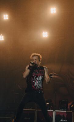 Godzinę później na scenie pojawili się Simple Plan i od razu powróciły wspomnienia! Miałam okazję widzieć Kanadyjczyków wcześniej już dwa razy, więc od samego początku nastawiłam się na super zabawę. I tak właśnie było! Wybrzmiały bardzo dobrze znane zebranym piosenki – Jet Lag, Your Love Is a Lie, Welcome To My Life czy Summer Paradise. Podczas tego kawałka nad publicznością pojawiły się ogromne dmuchane piłki plażowe, co dało niesamowity klimat całości. Mogliśmy myślami powrócić do lata i słonecznej pogody. Coś niesamowitego! Jednak największe wrażenie wywarł na mnie wykonany jako następny mashup trzech wielkich hitów – All Star (kto nie oglądał Shreka, niech się nawet nie przyznaje!), Sk8er Boy Avril Lavigne i Mr Brightside od The Killers. Dam sobie uciąć rękę, że nie było na sali osoby, która nie śpiewałaby razem z Pierrem Bouvierem tych klasyków!