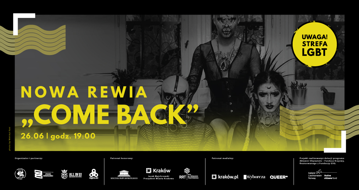 26 czerwca o 19:00 – prapremiera!!! – Nowa Rewia „Come back” w ramach projektu UWAGA! Strefa LGBT https://www.facebook.com/events/246132043976448/