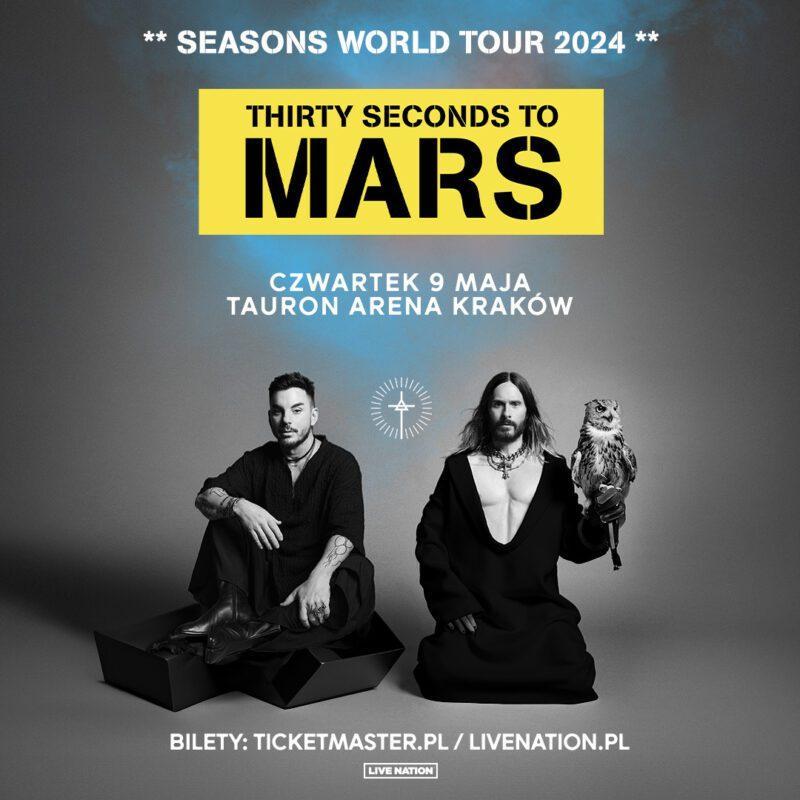 [Nowy Jork, 9 listopada 2023 r.] – Dziś, wspinając się po Empire State Building w Nowym Jorku, zdobywca Oscara Jared Leto ogłosił obszerną, światową trasę koncertową zespołu Thirty Seconds to Mars “Seasons 2024 Global Tour”, z którą odwiedzą Amerykę Łacińską, Europę, Amerykę Północną, Australię i Nową Zelandię. Będzie to pierwsza trasa koncertowa zespołu od ponad 5 lat. Szczegółowe informacje na temat dat trasy i biletów można znaleźć poniżej.