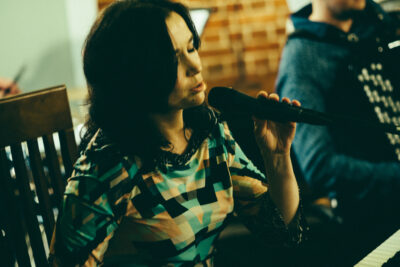 Rzeczywiście, aktualnie nagrywamy głównie w domu, z małymi wyjątkami. Te małe wyjątki dotyczą sytuacji, kiedy już skończą się nam możliwości techniczne i po prostu nie da się czegoś domową metodą zarejestrować, wtedy to wynurzamy się z naszej cudownej przystani [śmiech]. Ale nie zawsze tak było. A zaczęło się tak… W czasie nagrywania płyty „Pola lawendowe”, czyli już jakieś ponad 10 lat temu, poznaliśmy się z niezwykłym muzykiem i realizatorem, Marcinem Samarzewskim. Marcin pracował w studiu w Lesznie Wielkopolskim i do niego między innymi jeździliśmy nagrywać część materiału, najpierw z chłopakami z zespołu, bo jeszcze coś trzeba było nagrać, potem już ja sama jeździłam do Leszna. To był niezwykle twórczy czas dla mnie. Razem z Marcinem siedzieliśmy nad moimi nagraniami, wybieraliśmy najlepsze ślady z przysłowiowego miliona nagranych ścieżek. Ale przede wszystkim były to niezliczone godziny spędzone na rozmowach o muzyce, czasami o życiu, o graniu, obserwowałam pracę Marcina przy komputerze. Płyta oczywiście powstała, ale nasza współpraca trwała, bo nagrywałam na przestrzeni tych wszystkich lat kolejne piosenki. Jeżdżąc tak te 100 km do Leszna bardzo często, bo pracy przy każdej piosence jest naprawdę sporo, gdzieś między wierszami Marcin wspominał, że przecież mogę sobie to sama nagrywać. Ja mu na to, że absolutnie się do tego nie nadaję. Marcin znowu przy jakiejś kolejnej okazji nagraniowej zachęcał, ja jak zwykle, że nie… Kilka lat temu, przy okazji nagrywaniu piosenki „Hymn małego państwa”, odbyliśmy z Marcinem podobną rozmowę, aby jednak próbować samej rejestrować swoje rzeczy. I wtedy, podczas tej rozmowy dotarło nagle do mnie, że faktycznie, mogę sobie sama nagrywać [śmiech]. W drodze do domu już rozmawialiśmy z Włodkiem (często rozmawiamy przez telefon przy moich powrotach ze studia, bo koniecznie muszę się podzielić na gorąco wszystkimi fantastycznymi rzeczami z Włodkiem), że chcę, żebyśmy kupili sprzęt do nagrań, bo ja będę już teraz sama sobie nagrywać swoje piosenki. Włodek na to: ok, kupujemy [śmiech] No i zaczęliśmy kompletować niezbędny sprzęt. Pierwszym nagrywanym przez nas instrumentem był flet, wtedy przy nagraniu pomógł nam jeszcze nasz akordeonista Mateusz Pęciak. Do kolejnej piosenki nagrywałam już sama swoje wokale. Potem było tylko z górki  [śmiech]. Perkusjonalia, gitary, kontrabas, akordeon, i wszystko inne, na co nam tylko przyszła ochota aranżacyjna.  Nasz dom właściwie przemienia się na czas nagrań w studio, czasami konstrukcje dźwiękochłonne stoją dłuższy czas, bo może zdarzy się okazja, żeby coś jeszcze nagrać. Podział obowiązków mamy ścisły z Włodkiem, on ustawia mikrofony przy instrumentach, ja obsługuję komputer. Działa nam to niezawodnie [śmiech]. Muszę też wspomnieć tu o absolutnie wyjątkowym Tomku Karmińskim, z którym nieustannie toczymy dyskusje aranżacyjno – nagraniowo – wszelkie inne i który, prócz fantastycznego grania na gitarze, ma niezwykłą umiejętność – ogarnia różne sprzęty nagraniowe. Bez jego pomocy często ani rusz.